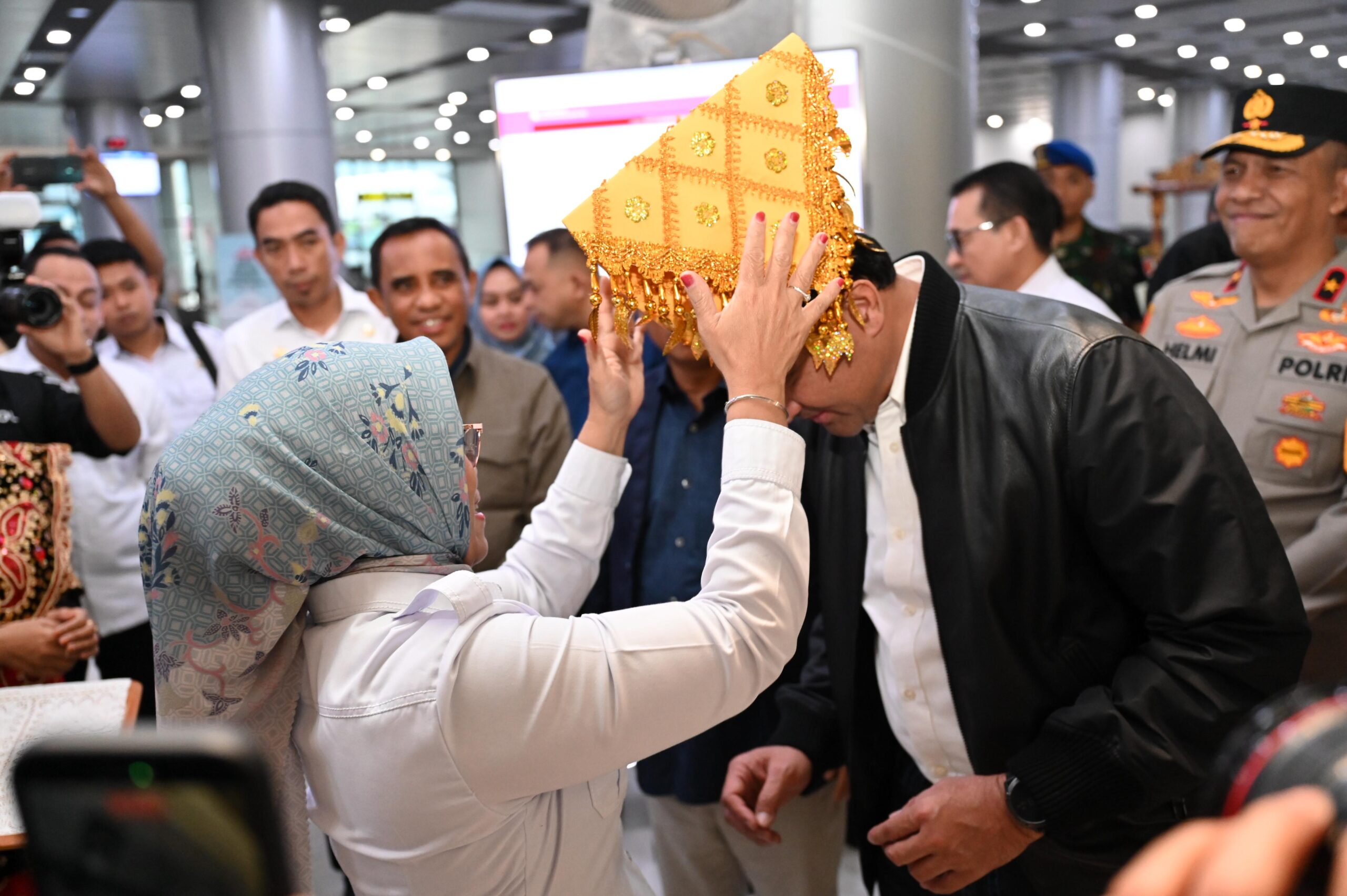 Dalam prosesi penyambutan yang hangat, Sekdaprov didampingi Kepala Dinas Pemberdayaan Masyarakat dan Desa (DPMD) Provinsi Sulteng Ihsan Basir, S.H., LL.M., serta unsur Forum Koordinasi Pimpinan Daerah (Forkopimda) dan sejumlah pejabat terkait lainnya. Acara juga dihiasi prosesi adat Kaili dengan pemasangan Siga (penutup kepala tradisional), sebagai simbol penghormatan kepada tamu kehormatan di Bumi Tadulako.